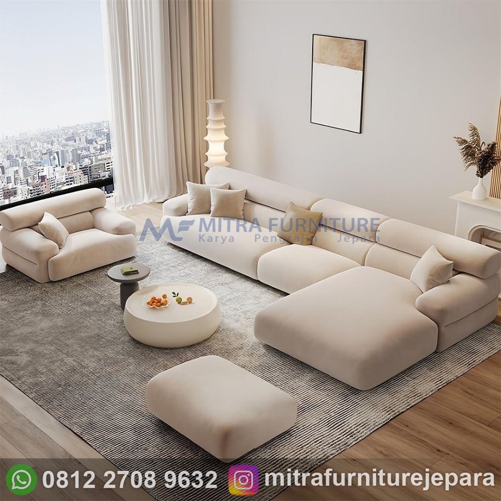 Warna-warna netral seperti abu-abu muda, krem, atau putih tulang menjadi pilihan utama karena memberikan kesan hangat dan alami. Kombinasi kaki sofa dari kayu berwarna natural menciptakan harmoni visual yang menenangkan. Sofa jenis ini cocok bagi Anda yang menginginkan ruang tamu terasa lapang, bersih, dan menyenangkan tanpa kehilangan sentuhan keindahan.