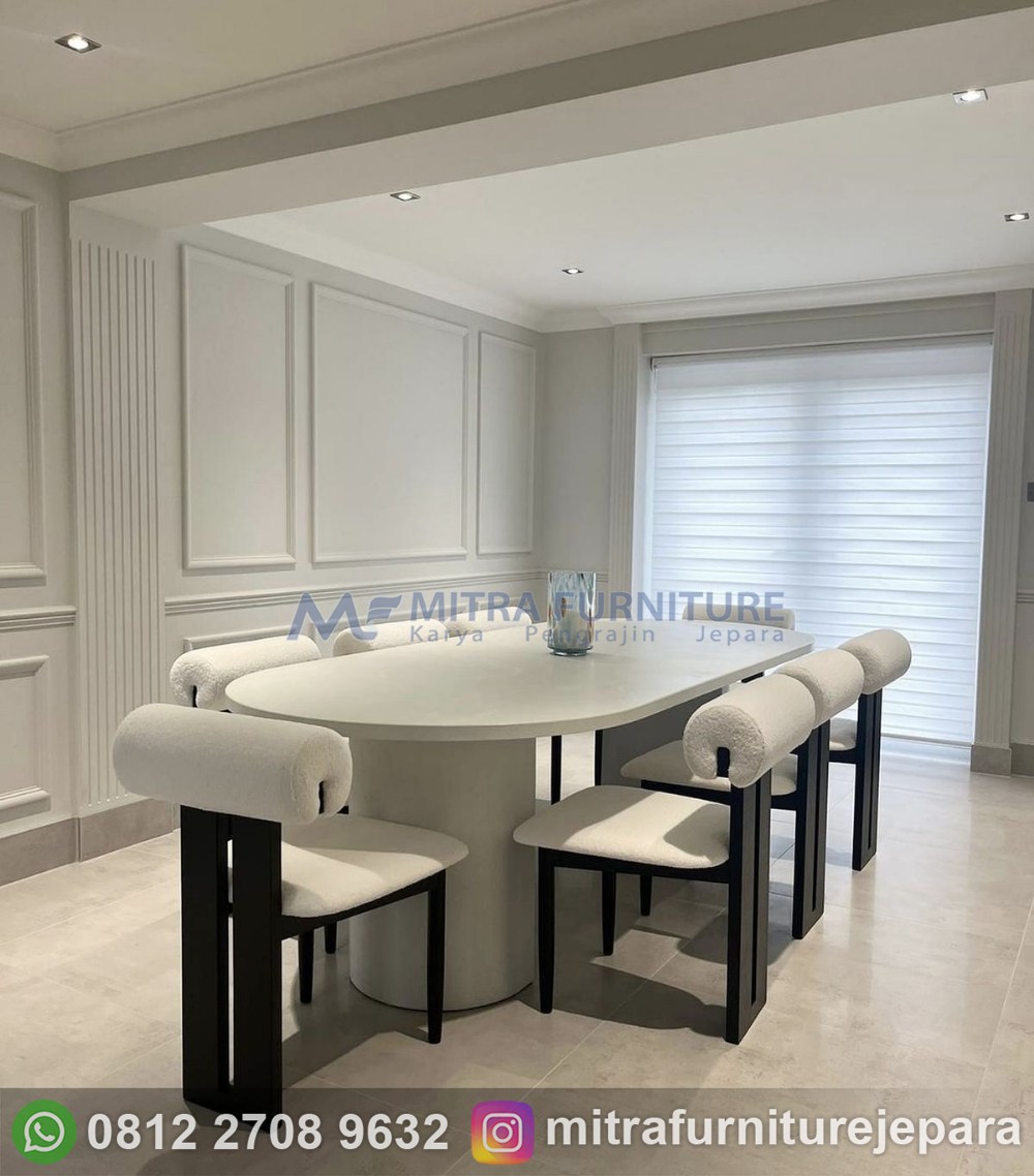 Investasi pada meja makan bukan hanya soal harga, tetapi juga soal keawetan dan kenyamanan penggunaan jangka panjang. Meja makan minimalis putih dengan desain modern memberikan nilai fungsional sekaligus visual yang mampu mempercantik ruangan tanpa perlu dekorasi berlebihan.